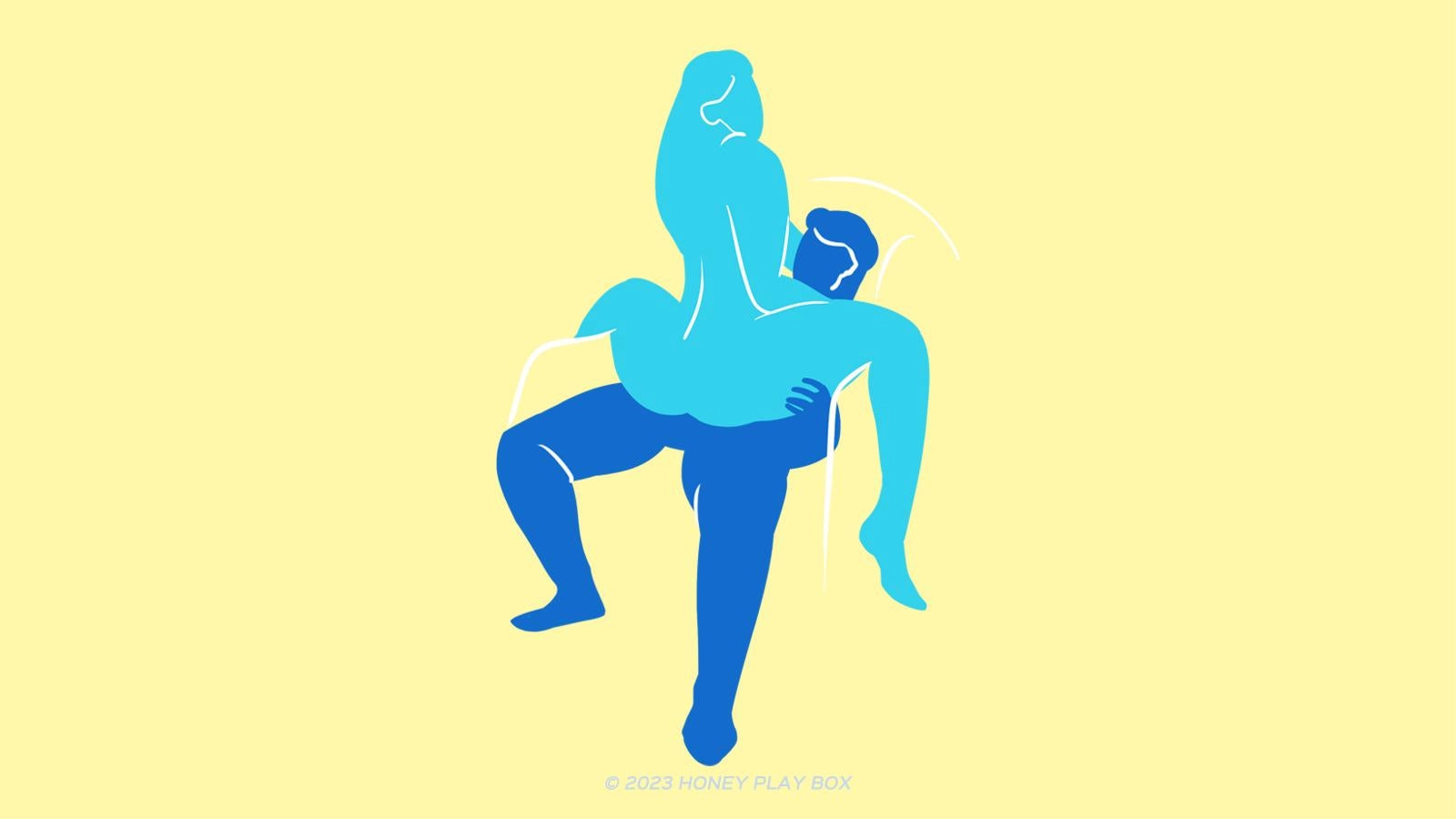 Last but not the least, the orgasm generator. This is the classic cowgirl with the most insane twist because you'll straddle your partner who's seated on the chair and carefully place both of your legs over the armrests.