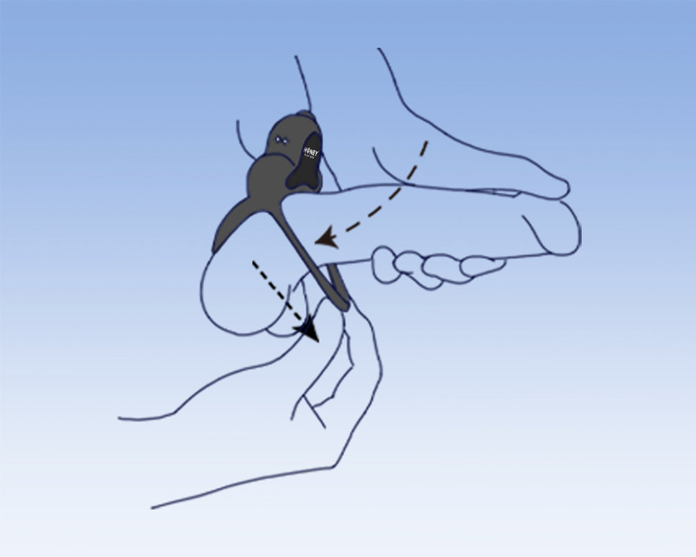 Step 2 — Optionally secure the scrotum or double the ring over the penis.