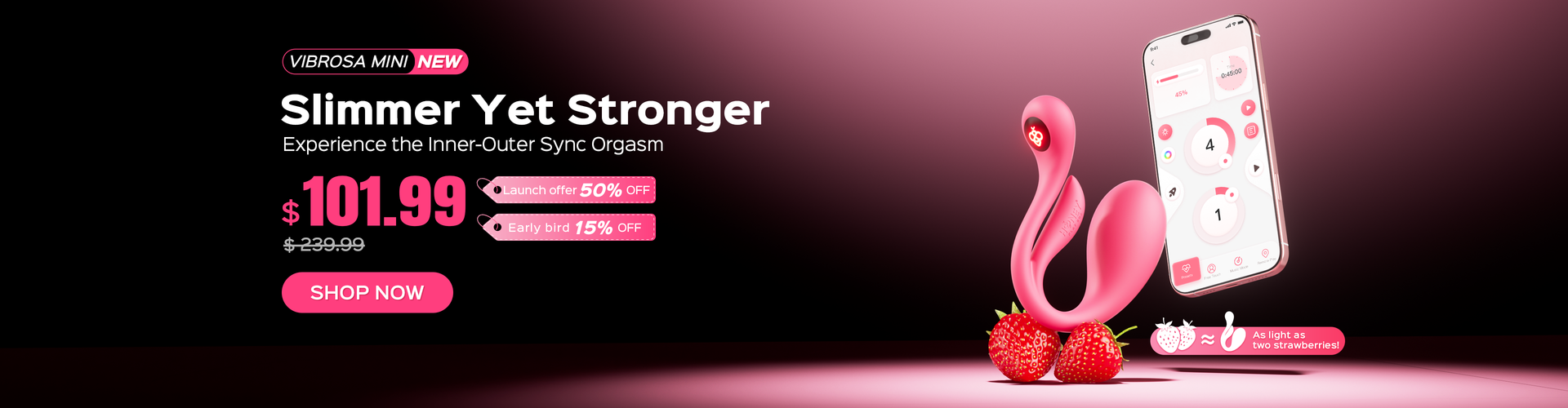 VIBROSA MINI responds instantly to the squeeze of your pelvic floor muscles—the stronger the squeeze, the deeper the vibration.